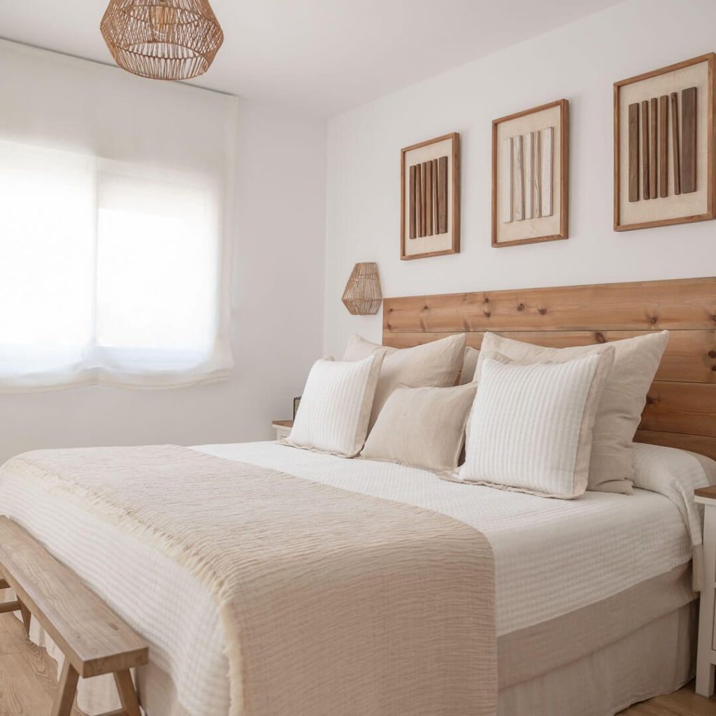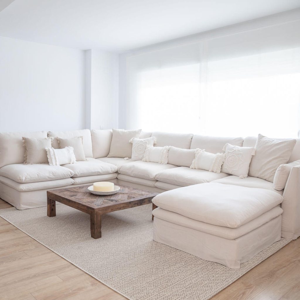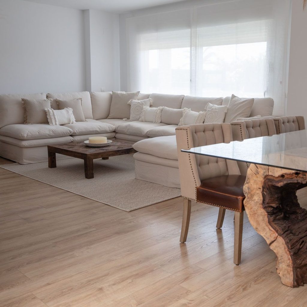 Comenzamos por lo que llamamos «pilares principales de una estancia» creando el match perfecto para Bea y Adrián: Un sofá amplio, cómodo y cargado de estilo unido a una mesa cuya presencia habla por sí sola. Flechazo con el que iniciamos este proyecto con el foco puesto en crear espacios dignos de disfrutar desde el primer metro hasta el último.