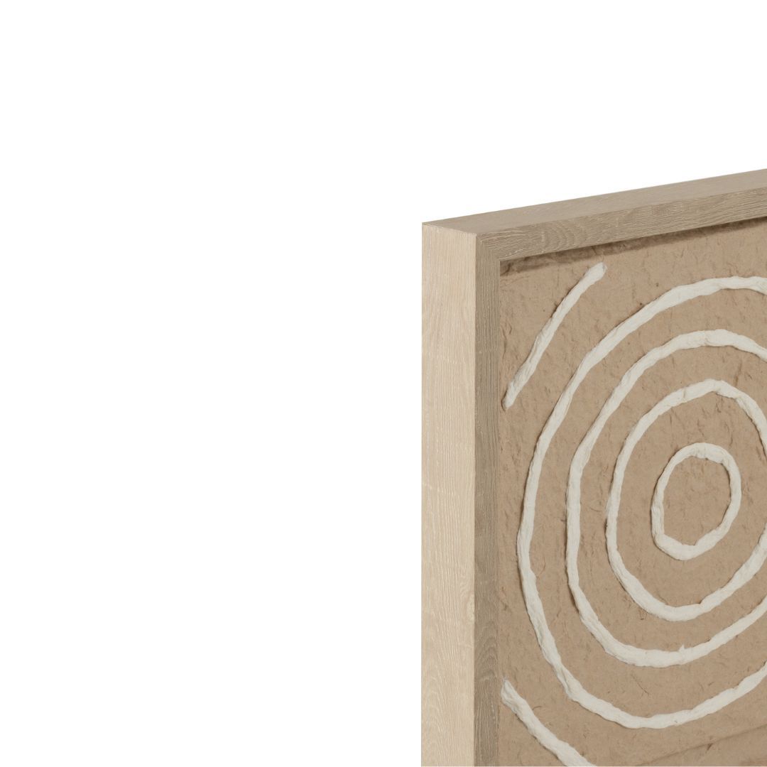 Cuadro decorativo con relieve en papel, fondo beige y motivos en color blanco.