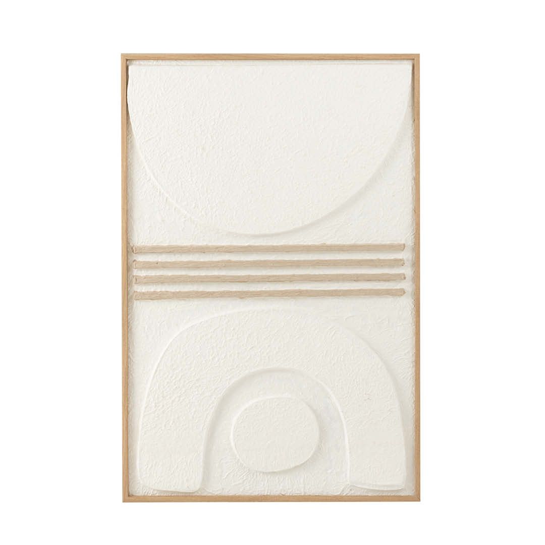 Cuadro mural decorativo con relieve en papel y marco de madera natural.