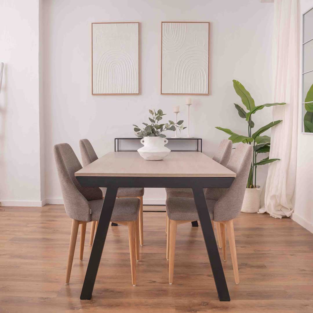 Sus patas delgadas y ligeramente inclinadas le dan un aire escandinavo, mientras que su aspecto general transmite ligereza y orden.