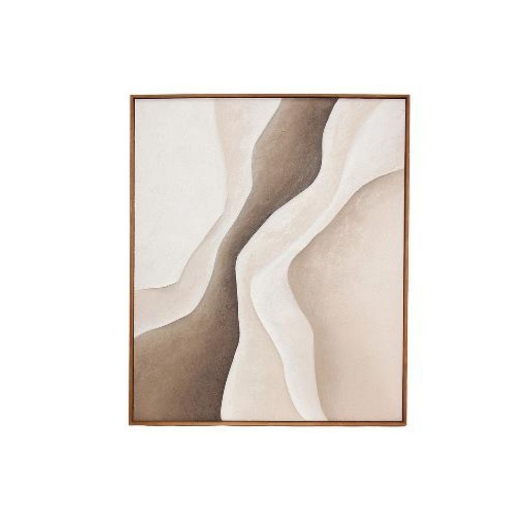 Las formas ondulantes recuerdan a las dunas modeladas por el viento, creando un juego visual de movimiento y equilibrio que transmite calma y sofisticación.