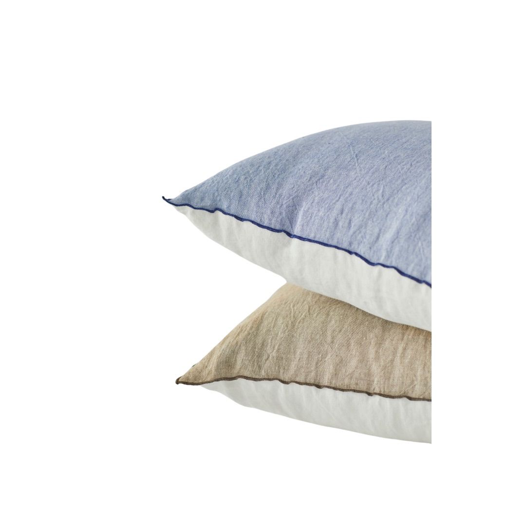 Plaid acolchado confeccionado en lino premium con delicadas rayas en azul cobalto, elegante y de estilo natural.