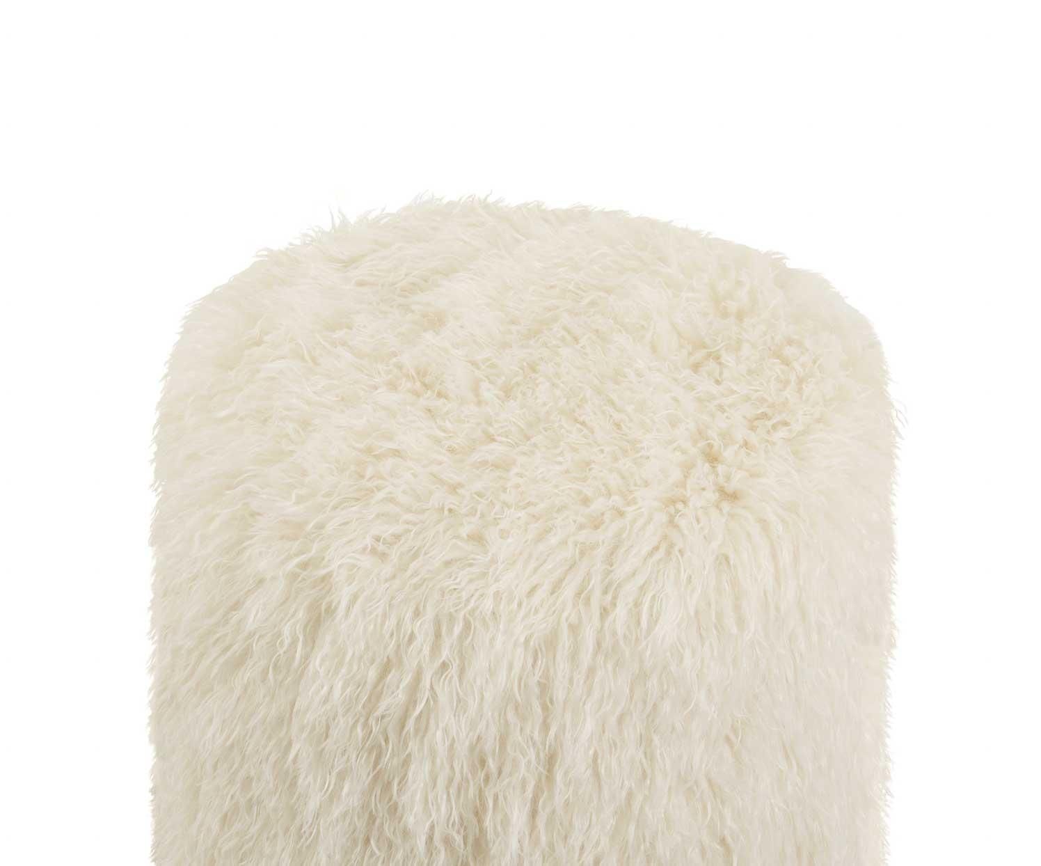 Tapizado en suave pelo blanco, es perfecto para usar como asiento extra, reposapiés o simplemente como detalle decorativo.